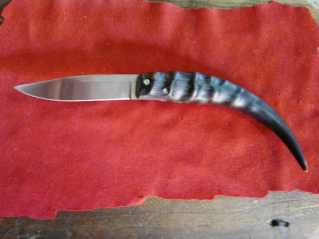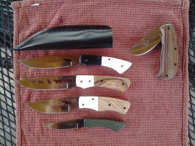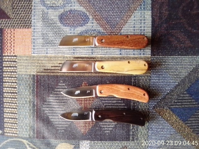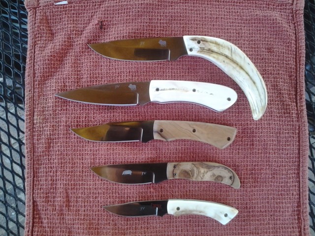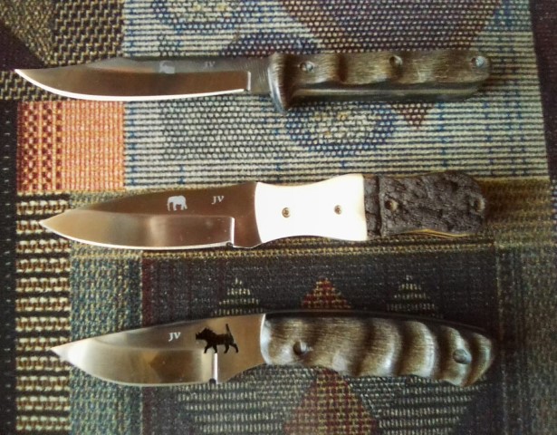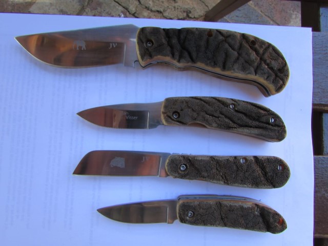 Ek het in 2011 begin om messe te maak. Boet van Sitterd, wat al 25-30 jaar messe maak, het in E15 gebly. Hy het gehoor dat ek ‘n gereedskapmaker van ambag is en het my gevra of ek hom kan help om 50 knipmesse te maak. Hy het al die masjiene en materiaal gehad. Ek het by hom die messe gemaak en die helfte van die bedrag gekry. So het ek toe my eie masjiene gekoop en by my huis begin messe maak. Ek gebruik Sandvik 12C27 en 14C28N staal, wat van Swede af kom, is spesiaal ontwerp vir meslemme en chirurgiese instrumente. Die lemme word hardgemaak in furniese oond teen 1070 grade en in olie afgekoel, dan in oond getemper teen 180 grade vir 1 uur.